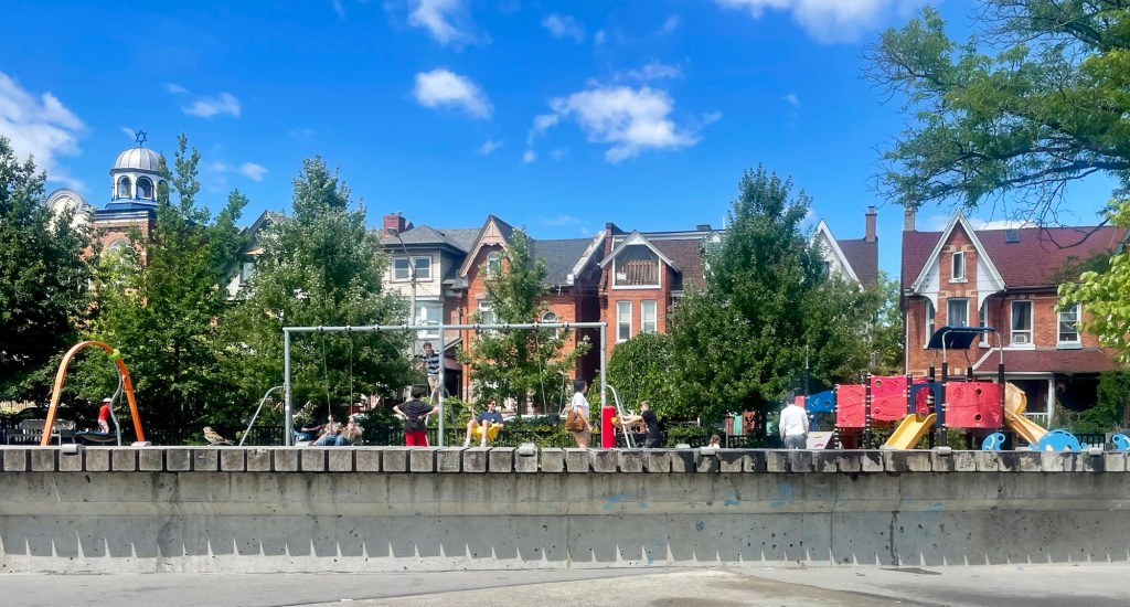 Meanwhile I think about how empty the playgrounds in Buffalo are whilst I kick Carmen’s ass in tennis some mornings. The hard contrast in playground fun levels is a difficult m pill to swallow. Politicals doesn’t not come up as Americans in Canada. Canada is better maintained. Period. Most public park playgrounds aren’t like this one in the middle of this vintage shop and pretty overrun by homeless at times part of downtown Toronto called Kensington Market. Crazy. The US&A is stuck on a vicious cycle of non maintaining and non usage. It’s bigger and we need a massive movement toward virtuous cycles of our institutions. It takes a massive amount resources and energy to accomplish. Like. Early childhood. Infrastructure. To fucking start. If it sounds like Scandinavia, then we’re Scandalnavia. Massive amount of resources and energy.