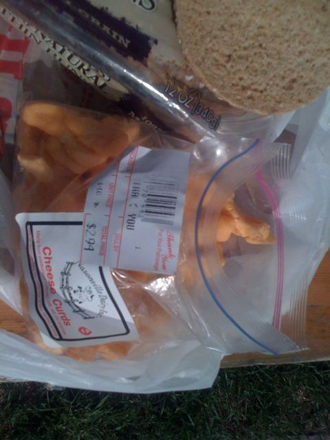 I typically set an activity and then countdown on my odometer. So for example, earlier today I had a scenic twenty mile stretch without services. I broke it up, telling myself after the first 10 I would stop and eat some cheese curds and stretch out on the side of the road. Then I had another ten miles into a town so I decided I’d go ten miles and buy a sugary beverage (the lipton glass bottle green teas are boss!) and eat a banana/peanut butter sandwich in the park.