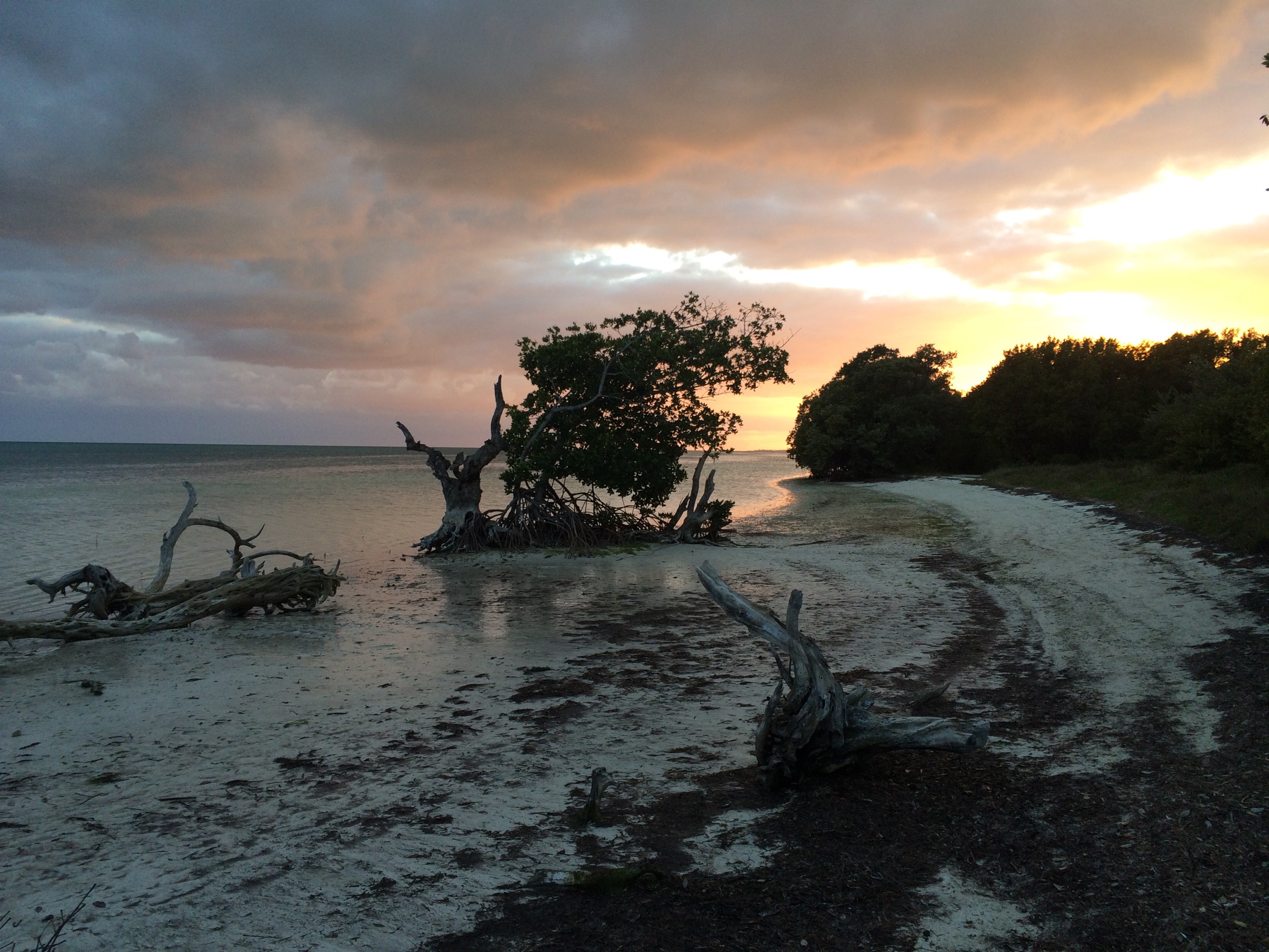 Dipped into Long Key State Park and got the last primitive campsite available! Paid for one $8 shower and took three, also snagged some electricity from what was one of three campsites that apparently was reserved but yet unoccupied. Thanks! The primitive sites were pretty awesome, wooden board deck with a shelter and a picnic table. Not very primitive to say the least. Chatted it up with an Austrian couple as well as a couple on a tandem bike tour. They seemed to be waiting for the wind to die; it’s been pretty hardcore out of the north and east – 25 mph. So that’s been great for us, but they were heading out, so no bueno.