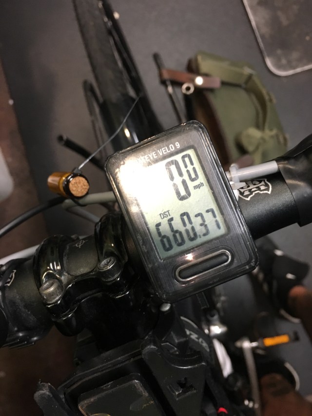 After the morning packup, I empty my bike and flip it over to see what’s not working. I’ve got a slow leak and my little hand pump won’t put the last 15-20 lbs or pressure into my tube. That and half of my top ring’s gears are rubbing. These issues are making life harder but touring is not about perfect conditions, it about whether your bike can keep going or not. I speak to a couple cyclists (the carbon fiber, kitted-out, day-riding variety) that come speeding down from the north and stop to use the restrooms. Nice guys and they give me bike shop and spicy fried chicken advice 🌶. They don’t know if the bike shop at the Trace terminus is open Sunday – why is this a recurring theme? After some map research, I get moving even later than the day before.