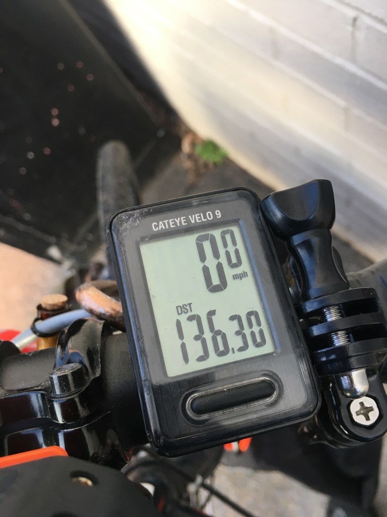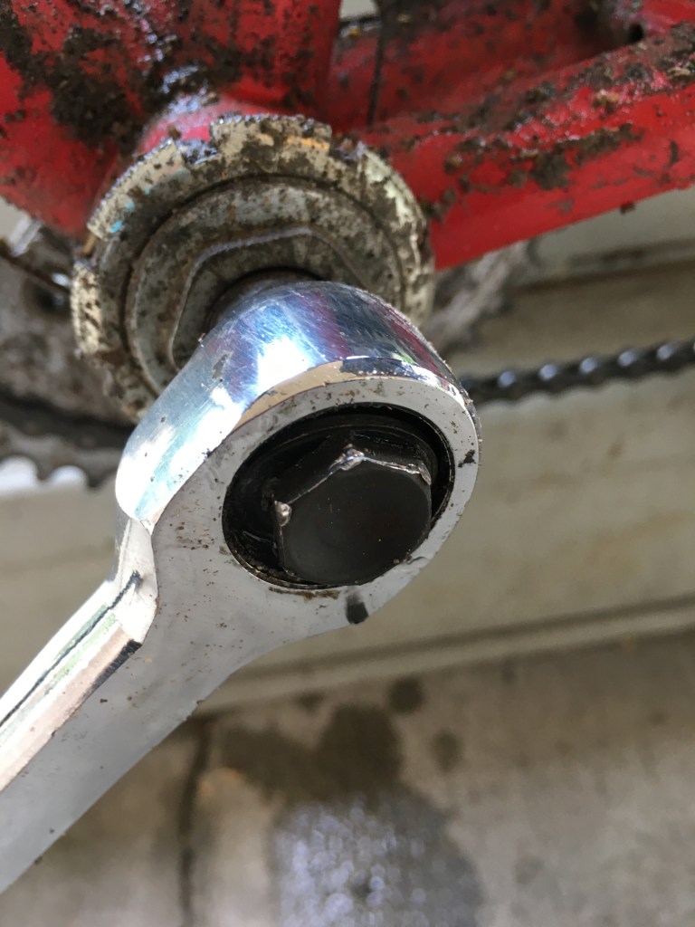 Just a couple miles in and Damon’s crank and pedal have come loose. My wrench won’t fit in there so I do my best with a leatherman. That doesn’t do it.