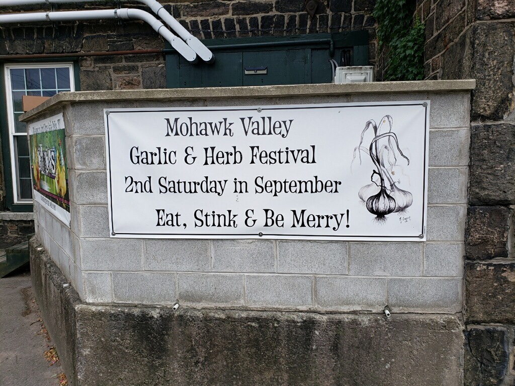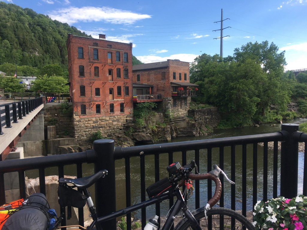 A little more death dodging and we arrive into Little Falls, NY. It’s labeled as a city. It’s gorgeous. And it charms the shit out of us. We see ice cream. We stop. We get ice cream. They even have vegan ice cream for Damon. And fucking pistacho. I love pistacho ice cream. I get some all over my face and shirt, while receiving an impromptu tour of historical facts on the area from a cute redhead who’s running things at the now converted old stone mill. She’s really on top of her shit. There’s an annual garlic festival here in September: “eat, stink and be merry.” Stinking like garlic would probably be an improvement on my current smell.