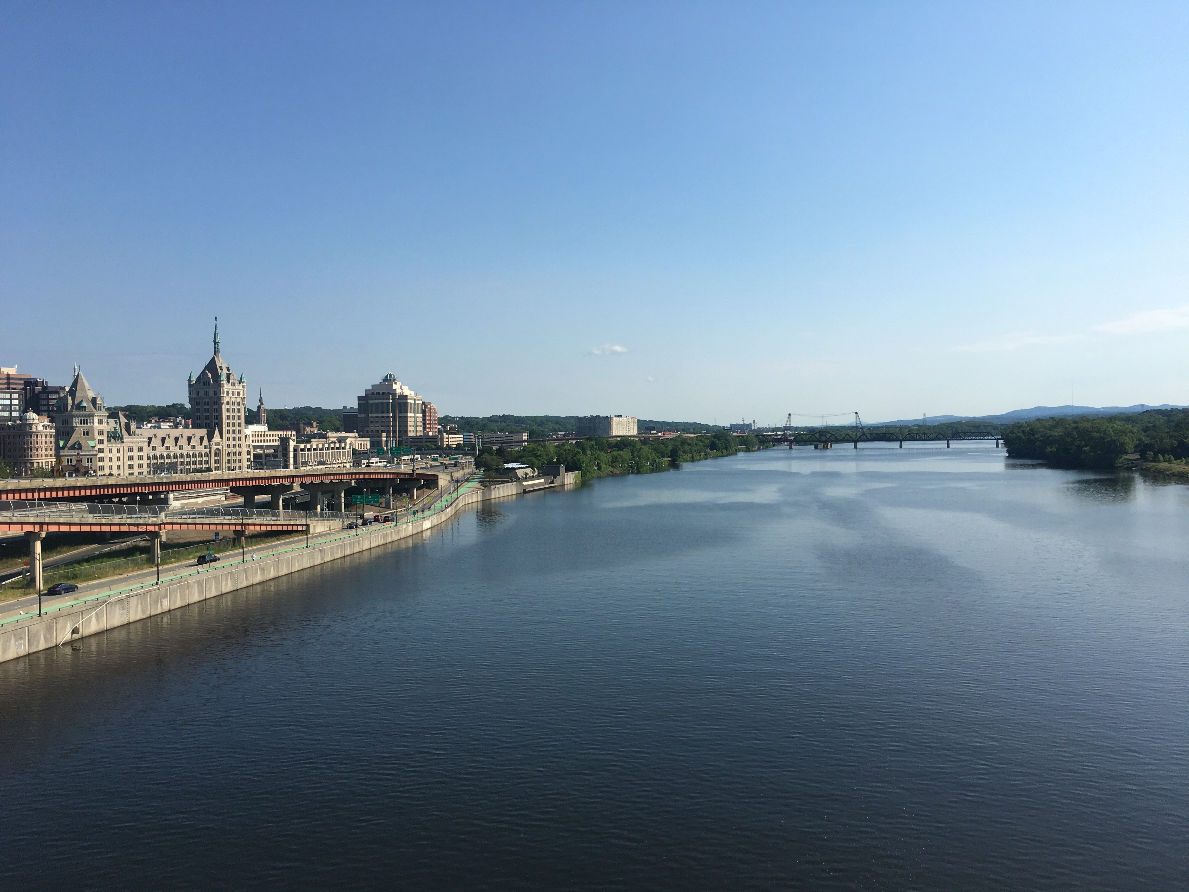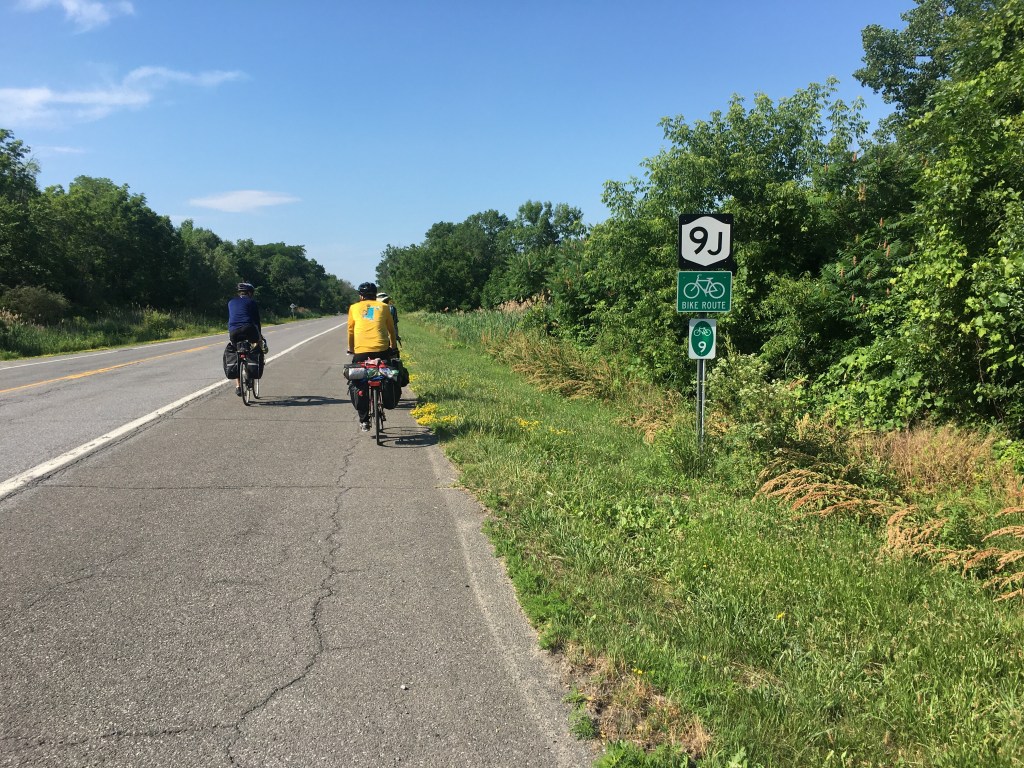 We hit route 9 for a long stretch now. This is no longer a canal trail. Hills. Hills. Hills. They kick our ass. Then they do it again. Then again. This shit is horrendous. Grueling. Painful. The heat. The hangover. The climbs. We take a break in the tiny city of Hudson. It’s got cute little cafes with patio only seating. I eat a second sandwich and take a 5 minute nap in the city park. Then we move on for more hills and more heat. My headache has finally begun fading.