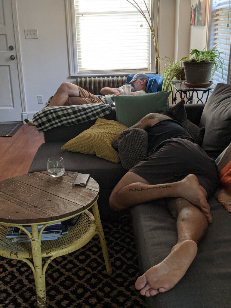 We grab some groceries for dinner and head back to Pats for refuge from the near 100° heat. We’re chatting in his living room and I pass out in a matter of minutes. I couldn’t have stopped it if I wanted to. Señorita Siesta has come for me and make me her bitch. Pat stages a photo which may be my favorite adult photo of myself in current existence.