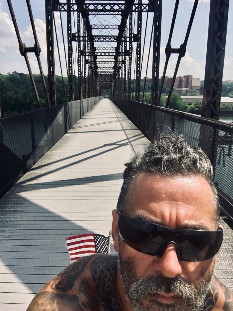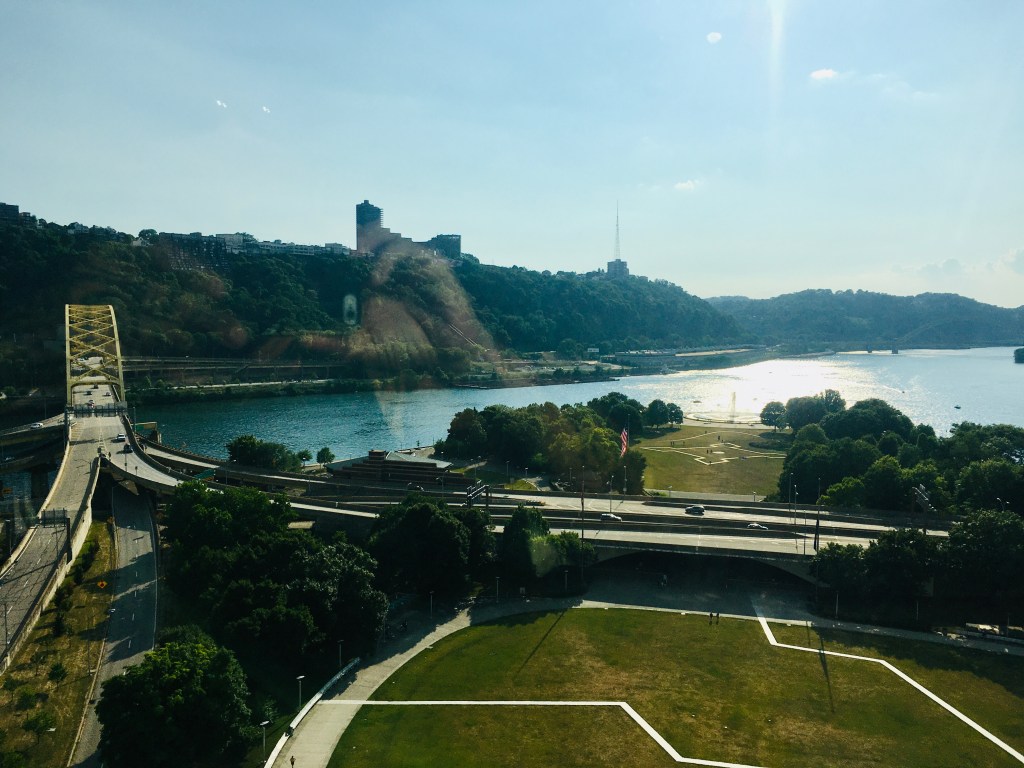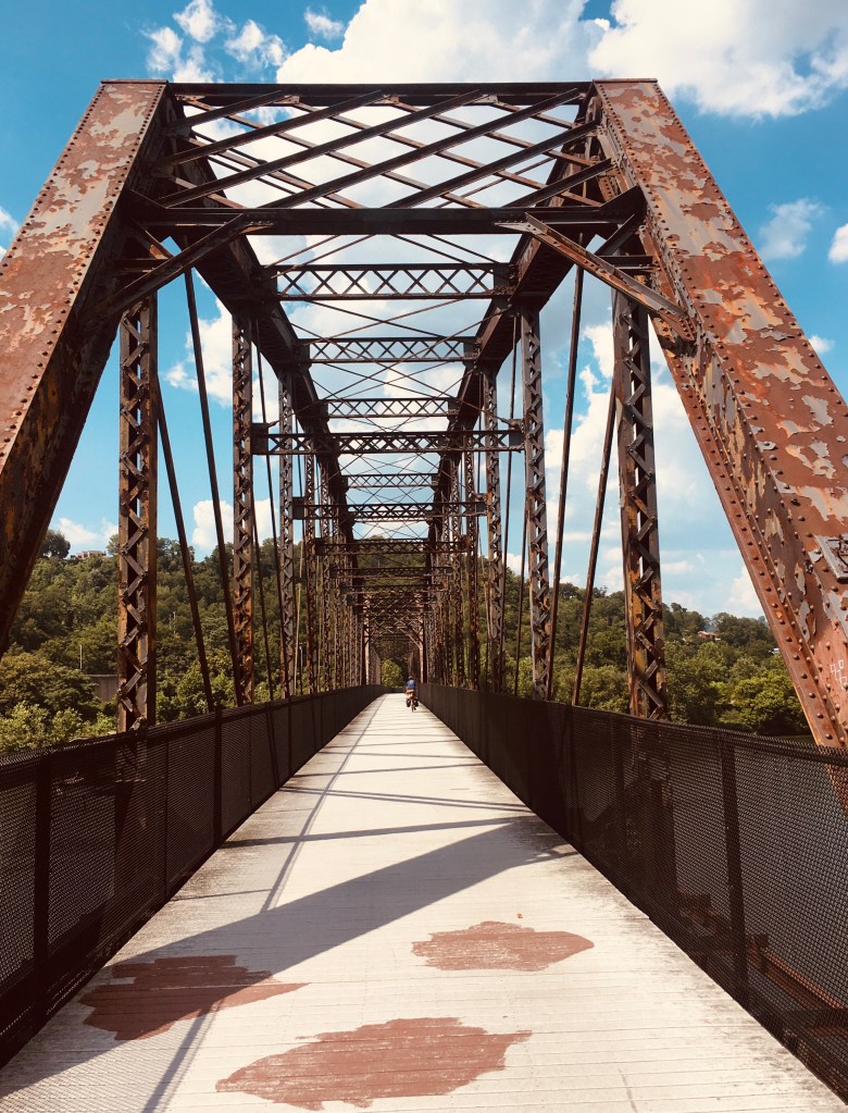 Daniel has secured a hotel in downtown Pittsburgh, which coincidentally had to fight the US government to spell it that way when the feds told every Burgh in the nation to drop the h. But Pittsburgh PA didn’t wanna be Pittsburg PA. True story. I’m exhausted from lack of sleep. But with a solid amount of beer calories behind me and a shower and comfy bed ahead of me, I put pedal to pavement (the trail is actually mostly crushed stone) and motor into the Steel City. Lots of bridges. Lots of industry. I like Pittsburgh.