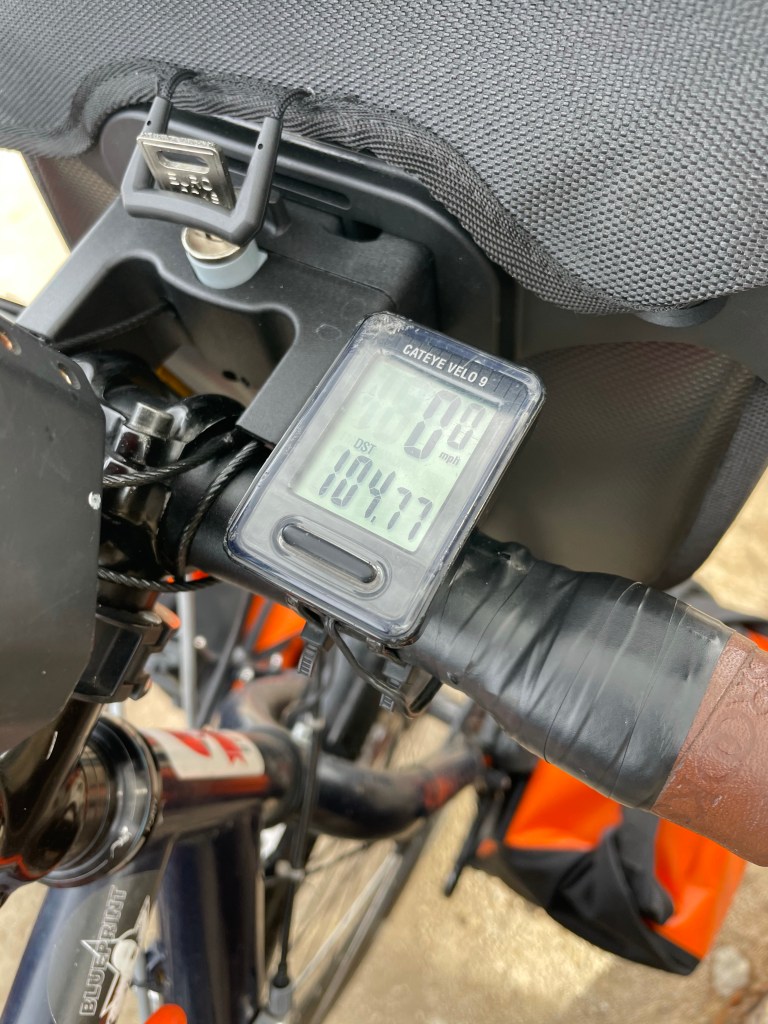 With a few well earned descents we cover 15 good miles before the mountain winds come whipping in. First, I only notice the gusts kicking up when I come around a bend on a downhill and it smacks me in my face. Later, I’m broadsided by one and almost thrown off my steed into the road. This is a white knuckle affair. A royal rumble championship match. Fortunately we only get hit head-on about 10% of the time, as we gut out another 20-25 miles of climbs and descents — gripping hard and trying not to fall off a cliff or get blown into traffic. Wind is nature’s biggest fan. After 4,603 feet of total elevation gain, some life threatening gusts, and miles upon miles of stupid expensive dumb ass border wall, Ben’s quirky spread of land lays just beyond a UFO cemetery. I don’t have the energy to stop or to make that up; I promise pictures when I go past it again tomorrow morning.