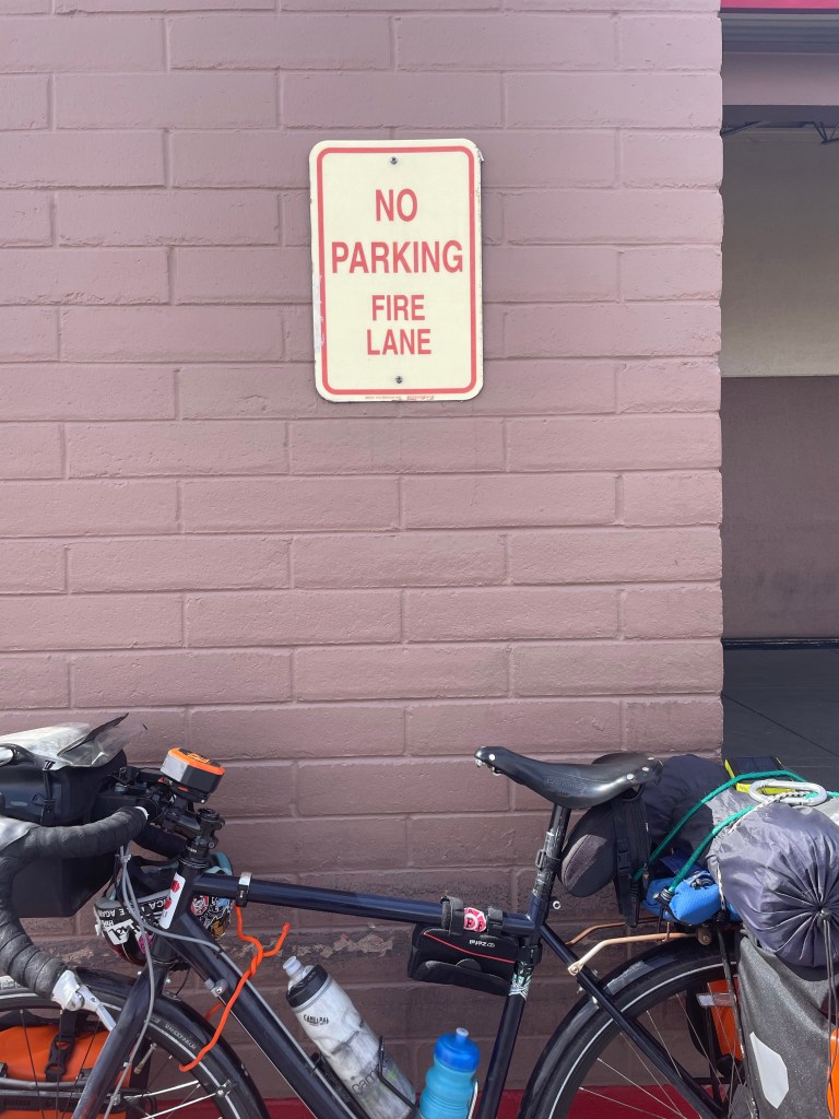 The terrain declines so I finally pick a little speed and a little steam. We get into what is mostly a ghost town. Abandoned old buildings are falling apart; tumbleweed appears to be the majority of the citizenry. I’m why we pushed on to get to this just as absolute darkness comes in. Fortunately we find a cheap motel with a quirky Mexican-American owner/manager. I really wanted to hang and chat with him more. Butt. Too much tired. Must sleep.