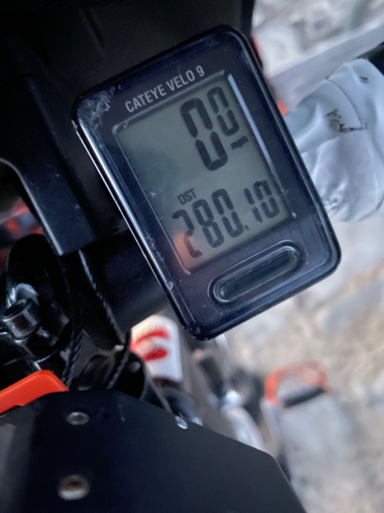 We ride upwind downhill. We ride upwind uphill. The headwind does not subside, and our course all day is due southeast and directly into this wind. It is a game changer. We’re only going 8 mph downhill. This shit is difficult as fuck and so we take lots of stops. We talk about hydration while we down bottles of water one at a time. Plenty of people throughout history have died for simply not carrying enough water. Six million ways to die, choose one. We’re feeling confident in our supply, but I’m still concerned about where our next water is coming from.