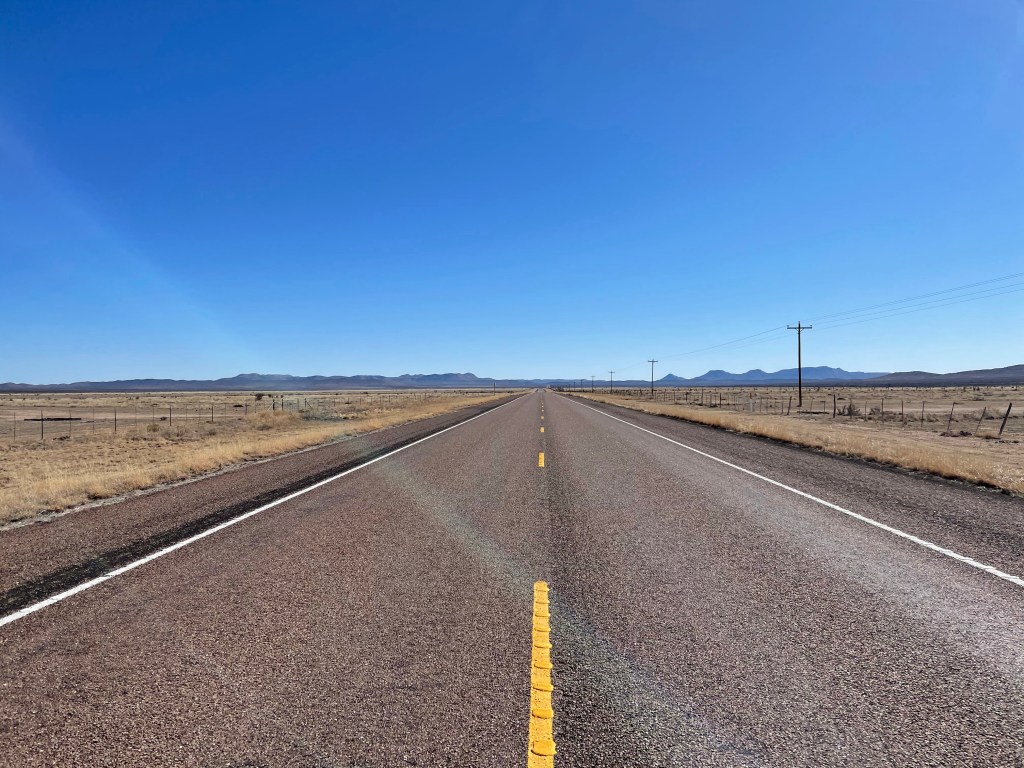 It’s bitterly cold outside of my paper lodging in Marathon as the sun just begins to brighten the horizon. Eventually I drag myself out and start packing; there’s a layer of ice on the gear I left outside. In fact, this whole town was covered in snow just two weeks ago. It’s supposed to warm up today with highs in the fifties. There’s something like 175 miles of US 90 between us and Del Rio with almost nothing on it, save one town called Sanderson, about 55 miles up and another called Comstock, about 145 miles up. We’re planning to hit the coffeeshop on the way out; they have great coffee and smoked salmon on the menu.