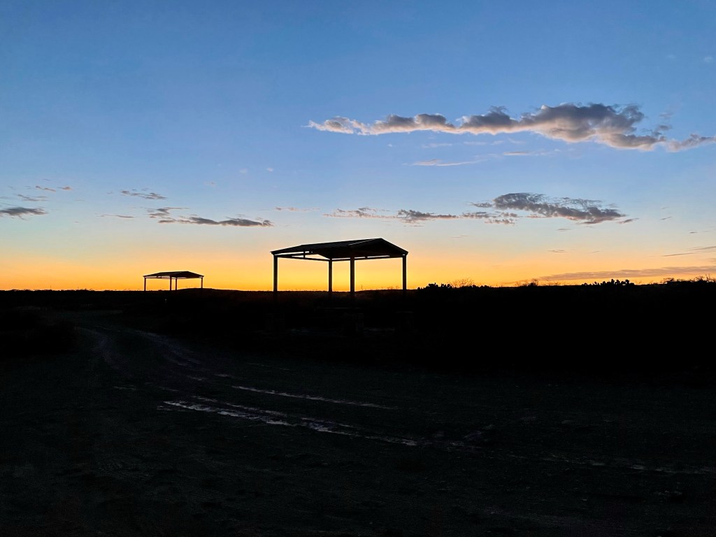 As the sun is setting, we come up in Seminole Canyon State Park. Their campgrounds are closed and their bathrooms and water are after are cut off, but we cruise in the dark and set our tents up in the day use area anyway. The wind is howling even more than during the daylight. Peanut butter bananas get crushed under a sky that must feature at least a thousand stars. We are lowing water but this is really an amazing view.