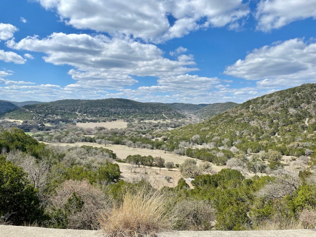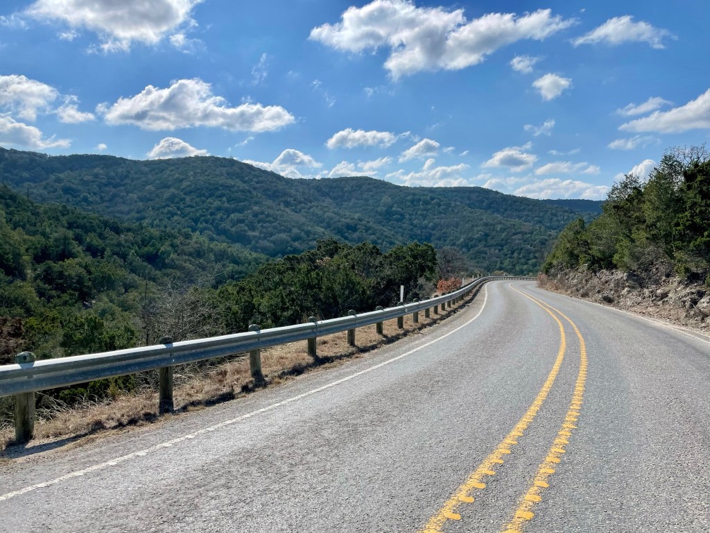 This is climb one of four like this today and the grade is indeed a challenge, I’m in first gear and stay there and spin, zig zagging my way up. I’m going 2mph. I’m sure because I’m looking at my odometer as I pedal. Damon is ahead of me taking a break. A minute later and Damon is walking his bike alongside me riding my bike; he does well for a bit but I don’t see him again until I’m this little town called Leakey. Climb one, done, hun. Fun.