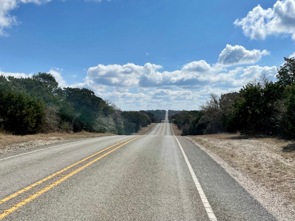 It’s early morning in Camp Wood, TX. So… if it’s morning and camped in Camp Wood, is that morning wood? What’s the rent on something like that? The rent is too damn high. However, the sounds of dogs and cats and roosters wake me up out of the tent at 6 or so. I replace that leaky tube, which is now completely flat. Shitty gas station coffee and a gas station shitter lie before me. Before the hills that lie before that shit. And I hear these hills have hills, not unlike the ones I caught on the northern bound Natchez a couple years ago.