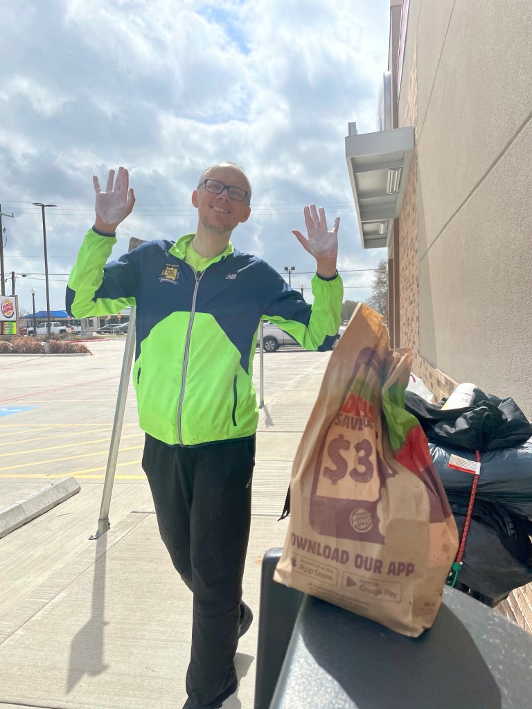 There’s three uniformed cops in between us in line, none of them are covering their face, but all three are fully uniformed up. The employees have masks covering their mouths and most of the noses, most of the time. My bandana starts right below my eyes. I kinda wanna just sorta have a kinda sorta discussion with them about it all. Its strange to me that they’d blatantly be like, nah fuck the health of these residents that pay our salaries. They have at least been offered the shot, clearly everyone else in the place has not. I decide not to have the conversation, since I don’t want beef and already had plenty of pig in my breakfast. Instead I go with a pistachio muffin and an overpriced coffee refill. Damon eats a whole bunch of something and still stops up for an Impossible Whopper to go on our way out of town.