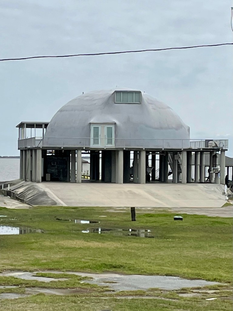I’m naturally lit rolling out the first 20 miles. The Meters are rocking the playlist. I am Fire On the Bayou. Same feels as the day coming into NOLA. Plus, after a couple days of contra-riding of my 2019 ride out of the same city, I’m hyped to move on to uncharted territory. And this end of the nationwide road is not quite Van Horn to Del Rio Texas’s US 90 either. Whereas nayer a drop of agua out in Texas, in this part of Louisiana there’s H2-everywhere. On the same one road the neighborhoods of NOLA fade into rural bayou, minus the suburbs. Instead of cul de sacs I get sparsely sprinkled strips of house on stilts with corresponding piers and boats and wildlife. And it’s fun and funky and funny. All kinds of crazy structures and signage populate my perimeter for miles.