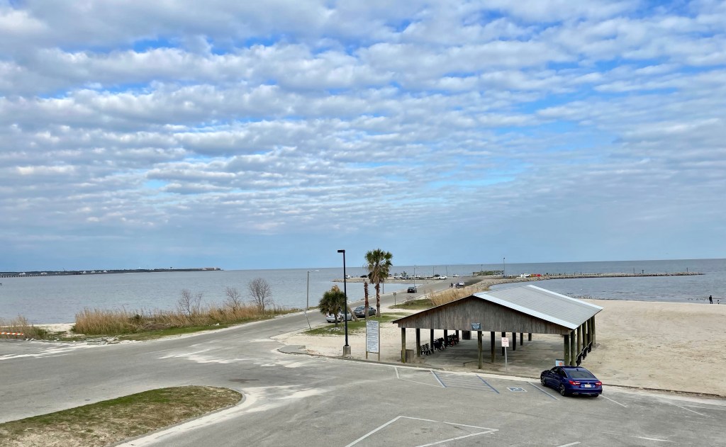 Migrating out of consumer Mecca, I detour us down to Beach Blvd, and behold: the Gulf of Mexico! First beach since I was sitting on Coronado with Candy and my cousin. It’s a breath of fresh air, figuratively and literally.