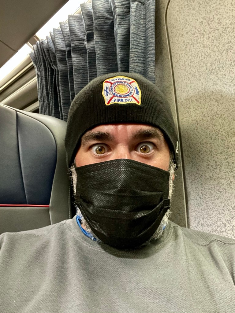 The train my be in schedule is not nearly as fast or fun as the bullet trains from Tokyo to Osaka. Or as enjoyable as John Candy and a Steve Martin. That standard is untouchable. I’m in the first seat, with no window on this overnight train and there is giant bright ass light over the door that is straight into my eyes. And the other passengers know the first two or three rows. It is bitched about. I have a mask over my mouth/nose and another over my eyes the entire night. I can only hope to emerge a beautiful and delicate butterfly and fly my way home. Everything is bumpy and loud and bright. I also feel like COVID ruined Amtrak too. I can’t even sit in the dining car. It used to be romantic, now it’s kinda rapey. My friend Tim is literally on his way down to Florida, he texts me back: