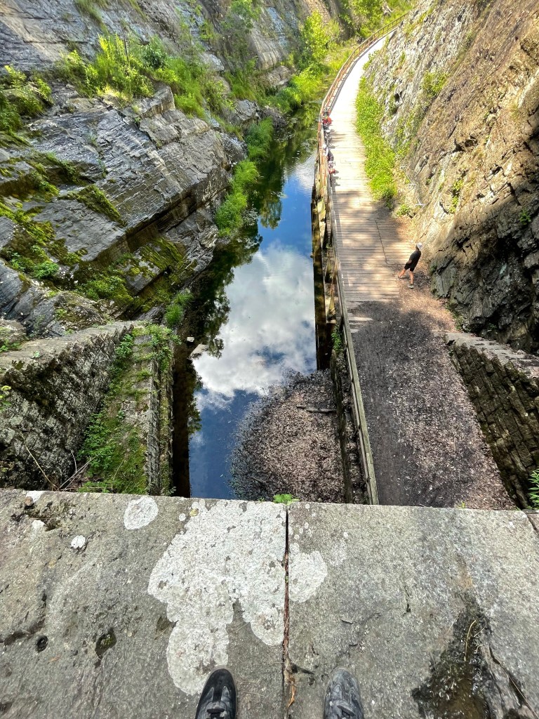 On what had already been ordained as a late start, we finally hit the paved Western Maryland rail trail around 11am. This paved rail trail literally parallels the C&O. Geography and math skills combine! We’re on such an awesome route that there’s two trails — where we’re going, we don’t need roads. It’s a welcome respite from the more rocky historic towpath that we’ve been on. Most delightfully, it is totally devoid of the mud puddles we’ve navigated the entirety of yesterday. After 15 vangloriously smooth miles, the asphalt ends and we’re back on the towpath, dodging muck holes. Mothermucker. The mud still wants to grab my front tire; I splish splash my way through it, getting wet and muddy again, though not nearly as soaked as in yesterday’s rain. Fortunately, today is a mostly sunny and cooler day and our first thirty miles cruise by blissfully, save the occasional bug in my mouth or mud splash on my sunglasses. Dragon flies and cardinals dart and glide across my personal viewing screen, sometimes even gracefully cruising alongside me for a good distance. Thanks for hanging little buddies, stay golden.