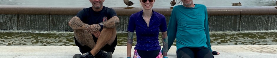 My head is pounding and I’m running on fumes; we’re about ten miles out. Fred comes down to join us and ride in the last hour, stopping to give tour guide info on the city. He really knows his shit; I’m trying not to pass out in the heat. We hit the terminus and I celebrate by standing close enough to the fountain to gain some misted relief.