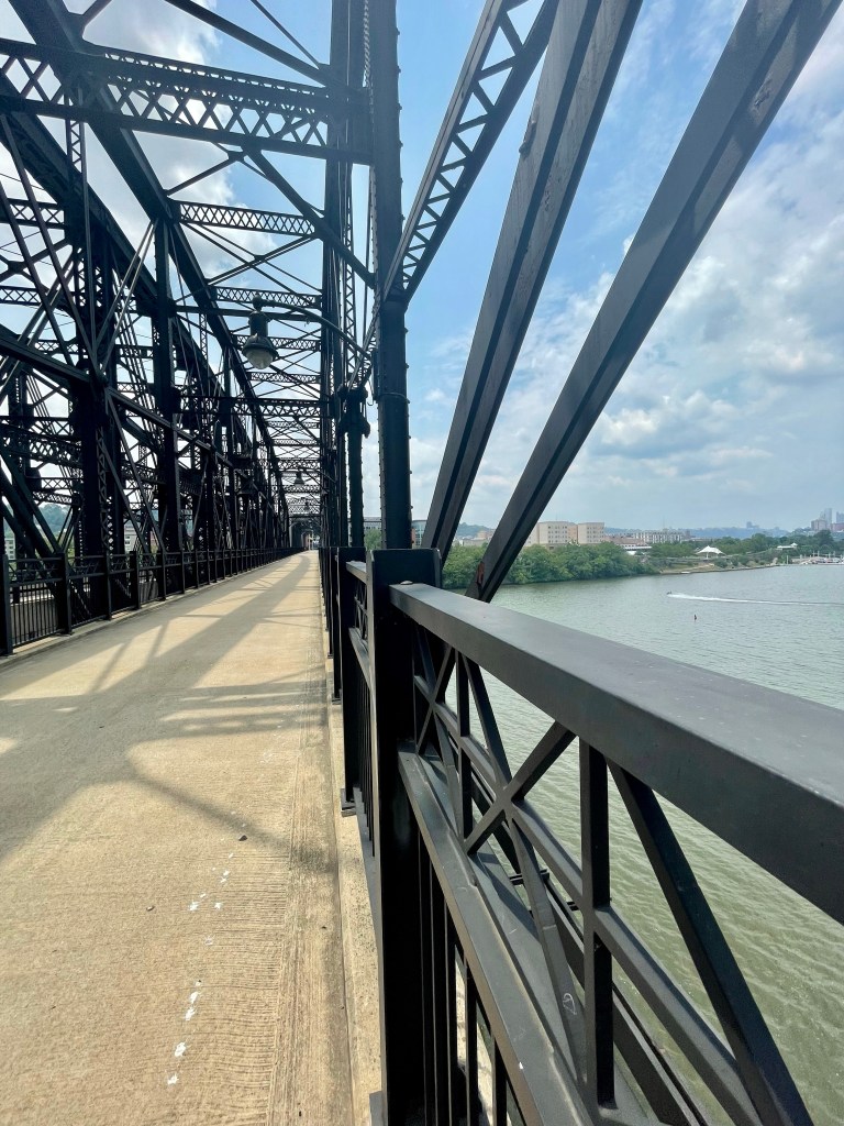 The heat is getting to me. I’m already feeling lightweight sluggish, probably a combination of too much coffee and too little water — but now I’m really dragging ass on the keep-it-movin’ tip. We’ve got 20 miles left and the remnants of rural PA completely roll away, leaving no trees to even pee on, spiraling into suburban enclaves and eventually down “steel valley”. A version of this still exists back home, but WNY hasn’t done nearly the job to rehab and revitalize the industrial wasteland that dominated both regions until the 70s and 80s. Bridges start piling up; the sharper inclines remind me that I’m on the lesser-geared Space Horse — missing the Sojourns easy breezing granny gear.