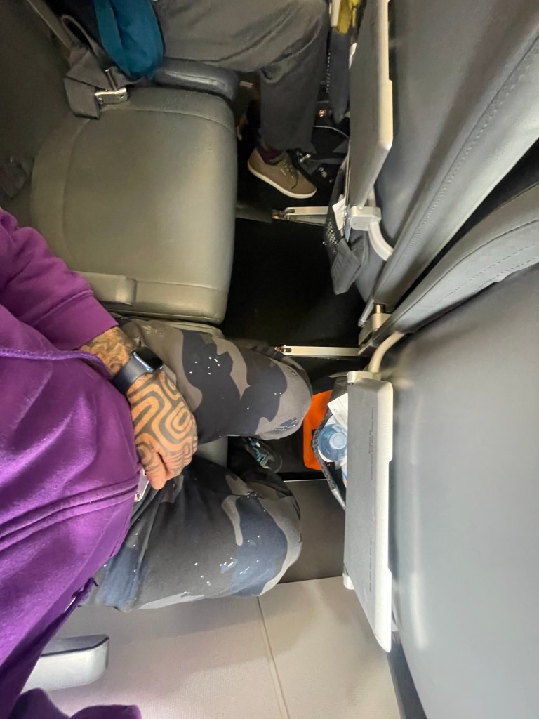 Time isn’t real, so we can pretend that we’re all caught back up. One attendant isn’t giving a fuck that that I am indeed going to Florida and the other one is telling us all that this flight is full and every seat will indeed get a butt in it; now a third attendant asks me if anyone is sitting in the window seat next to me. I look over and wonder if dude is hallucinating because it sure doesn’t look like someone is sitting there. I affirm that it’s empty. He thanks me. I ask if I can move over into the seat. On some Carlton Banks shit, he gives me the wink and the gun. I have no idea what’s going on but fuck it, I slide over. I seem to have gone from an overbooked to an underbooked flight. The doors lock and I go from “oh shit am I getting stuck here” to “oh shit I’ve got all sorts of stretch out space”. I’m amused that I get the seat with a seat for free, being all zone 4 and shit.