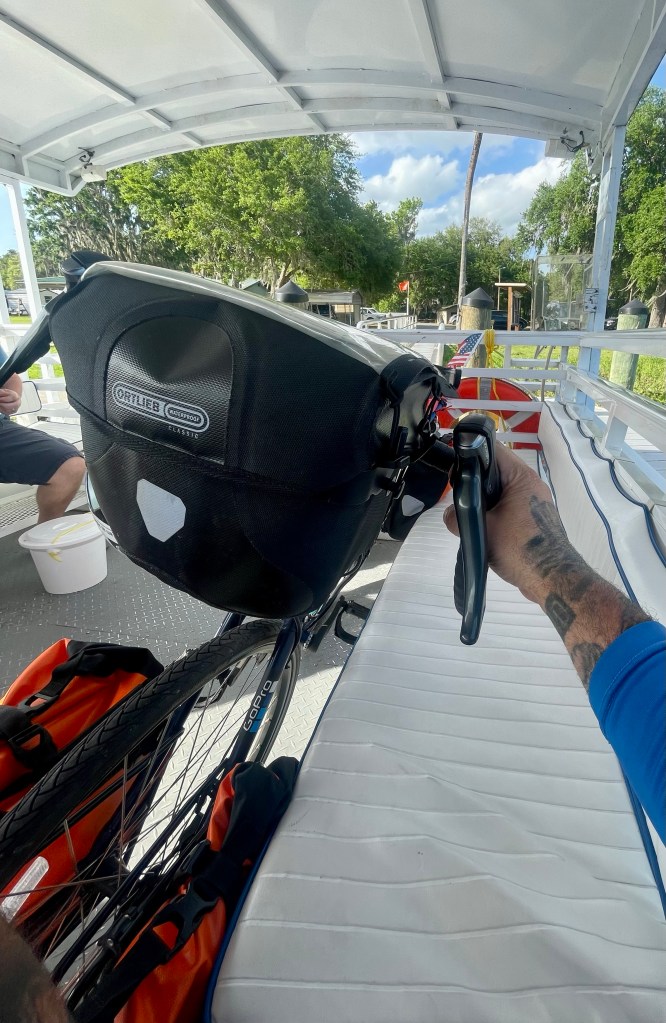Fast forward a bit and I’m on the ferry to Hontoon Island State Park where there’s a “primitive” tent site available for me. And cold filtered water at the ranger station. His name is Peter. I’m pretty sure he goes by Pete with his friends. He’s Ranger Pete. Ranger Pete, probably 25 years old, is straight out of Super Troopers. He’s got the cop mustache and soul patch combo down and I can tell he really loves his job. Pete’s a cool motherfucker and he captains the ferry and runs the museum too. So yeah. I make it in time to get there. So close to an advanced stealth remote sleep, I decide instead that $20 is a fair price for all of this legal primal living here on Honsoon Island, especially with the picnic table and outlet in the bathroom that has showers. There’s a van that bring people and their shit from the ferry to the campsite… Primitive, lol. Everything I need. Nothing I don’t. I pop up the palace. I eat trail mix. I eat Ramen. I look at maps. I crash the fuck out.