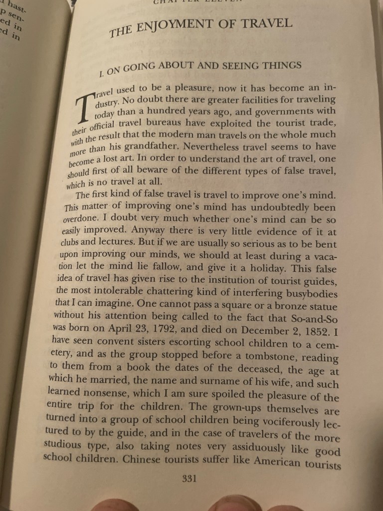 I ride 1/2 mile to the pool, where I’m reading Lin Yutang’s The Importance Of Living. Written in 1937, it has never ceased to be ever more relevant to the present day since it’s publication. It’s basically about enjoying life and “the noble art of leaving things undone”. Something I’m not very noble, artistic, or generally proficient at. Like most Americans, I value gettin’ er done. Like few Americans, I now realize how bullshit that value is. I’m on Chapter 11, The Importance Of Travel. Human beings get maybe 25,000 sunrises in our lifetime if we’re fortunate. I’m hoping to see 36,500 of them. I could on and on about this book; I’m not gonna, get yourself a copy. Reading is fundamental. And it also allows me to take pause and reflect on my own writing.