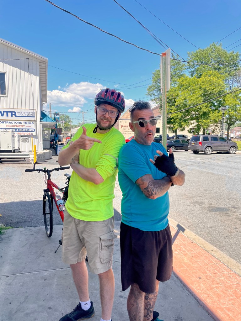 We are Trail bound on a busy Saturday morning – it has its moments. Empire State Trail. Er empire trail. Whatevs. It’s late morning to be exact. It feels good. Getting hottern hell already though. 15 miles in and we take our first little break somewhere past Harlem. I’m snacking on a beef bar when from behind I hear “late start huh?”. Um. Yeah, what I suspect is a curious citizen as usual. The yooszzz. “How far you going?”, “nice rig” is how they typically get to talking, then it goes on and on and on. This time it doesn’t get there, but in an instant, my mind goes there, painting the whole landscape like Bob Ross with a third eye. Before my body can turn around my minds creates the entire conversation with this typical dude about it. I’m so sure of it. Then I turn my dumb ass around. My homeskillet Anthony O’Leary aka Loki da Trixta. Worldwide OG, Brooklyn native, brand new Mexican dad, and my old university at buffalo hip hop student association comrade. As if putting myself back into Washington Square late 90s yesterday wasn’t enough, here’s my old friend I’ve done that exact thing with back then standing in front of me. 25 years alive and strong and I can’t do nothing but give the motherfucker a big old hug. Kara met him when we were all at Afropunk in BK circa 2015. Damon met him the last time I saw him living down in Mexico City circa 2018. Trail magic is upon us in a serious way as we become a four human riding unit. We catch up in union and harmony, our bodies and our minds connecting somewhere in the junction between exercise and conversation. Natural high amidst calculated operation. It’s especially sweet for me to see my old college friend. We’ve stayed connected in so many different way and here’s yet another. Loki (rappers hate when you use their government, as do tattoo artists and poets and graffiti writers, etc — basically a good majority of my friends), is pedaling 70 miles to Beacon to see his brother John, plus another old artistic juggernaut of an old pal named Sam Sellers aka Rabbi Darkside is playing a show. He offers for us to camp at his brothers house. The universe is a unique place and I’m so ecstaticly appreciative to be all up in it.
