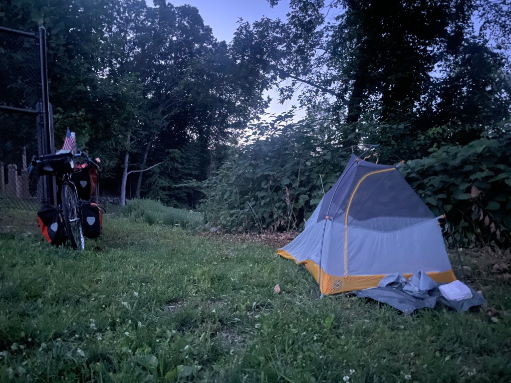 My mind settles in as the miles pour on. This long stretch of rail trail really does ease my navigational subscriptions. Rolling along and our cover is thinning out; we’re now along a highway. An hour of that and we’re all caught up in time — back at that tree shade planning sesh. How’s that feel Yorktown Heights. Their grocery store is a Mecca. It made the Whole Foods feel like a two dollar whore. If that still exists. $5 is the new $1. Anyway. The deli is more than robust and get a full on refuel and rest in their AC cafe seating. Back by the restrooms too. Purrfect is what the cool cats say. Operation remote sleep in the next 20 miles is already bubbling in my mind.