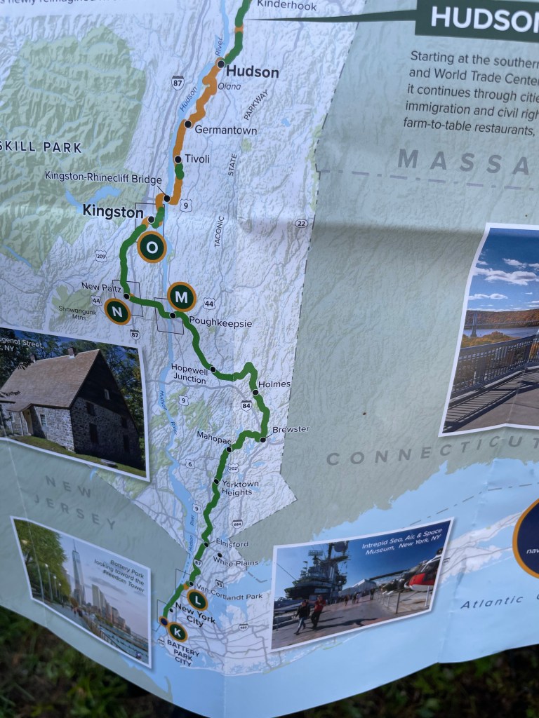 It’s almost 90° F and we’ve welcomed the shade of a tree to eat snacks, drink some water, and do some planning. It’s called tree-shade planning. And hydration and refueling. It uses the pronoun it and it is rest. It’s not much of a glam stop. No picnic table. No bathrooms. No water fountains. We’re literally under a tree in the shade, for my friends at home. We is Kara and Damon and I. Loki went ahead at the last stop. Hold up. Wait a minute. You’re asking yourself who the fuck is Loki?! Put a mischievous pin in that because i promise we will get there via space travel in just a sec. For now – right now – right now right now – it is hot as balls and ovaries and everything in between and we are out of water so our next stop is just 8 miles ahead in… Yorktown heights. York Town New York. It’s sounds wealthy. Probably isn’t. Typical New York bullshit. Bill shit. Whatever. This statewide trail got some funding a few years back; I’m grateful for the smooth surface; I’m dissapointed in the signing and mapping. Wayfinding as the kids say. We’re all babies man. New York State — who does pays me — should pay people like Kara and Damon and i to make this system better. Or even pay specifically Kara and Damon and I. Pad my pension or something. I dunno. Pay anyone other than whoever it is that obviously doesn’t really get it. Like obv. Maybe they don’t ride a bike at all. Or they do but they’re just some middle aged man in Lycra. Shoutout to all the actual mammals out there. Humanism. Anywho, MAMIL – you know some guy with a credit card and his wife in a support car not far behind, having a Cabernet every 10 miles waiting on his dumb ass to craft some sort of document that surely doesn’t even remotely qualify as map. Empirical fail. Don’t call me Shirley. It’s a brochure for sure. Don’t get me started on the confusing and inconsistent signage. Notably when one needs it most… like let’s say, through the Bronx and on Broadway and under the elevated subway. Elevated Subway sounds like a great punk rock band name. No help in navigating my bicycle through the Bronx though. I guess even that was miles ago, kilometers behind me… so we might as well go back… way back… back in time…