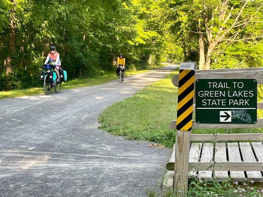 A brief break and I remove my front brake. There, they’re, their. Some sort of hot spot or bent rotor; causing resistance and clicking and vibration, plus the sound has been driving me nuts. Also there’s a steering wheel in my pants. No front brake though, at least til Syracuse. It makes all the difference and I finally hit cruising altitude in the good ole Raleigh Sojourn. Clark Griswold would be proud.