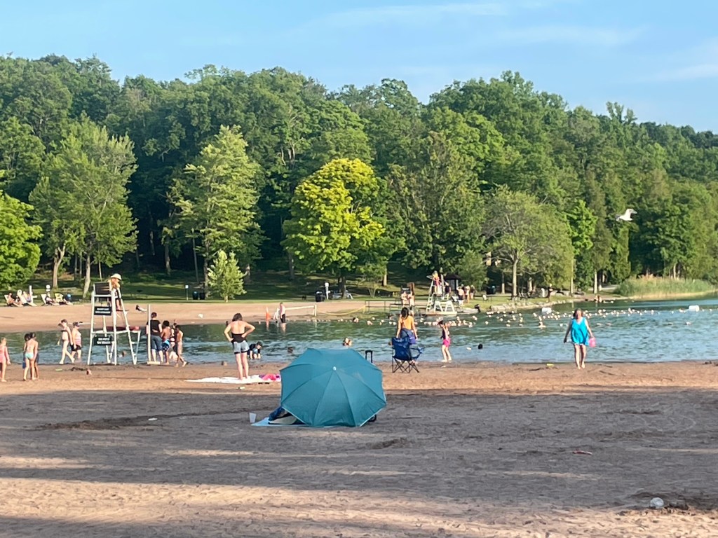 A few hours of daylight remain and we make Green Lake State Park. It’s the bees knees. Or the cat pajamas. Something that sounds cool but doesn’t actually exist. I guess. This exists. We check in at the office and make tracks down to the beach. I hit the water for refreshment — for about 90 seconds — then I hear “ladies and gentleman, it is 7pm and the water is now closed, please leave the beach area”. What the fuck? Kara is knee high and dives in. Damon is still at the shore and throws his hands up in surrender. I definitely have to be “sir’d” by the lifeguard with the giant cone thing. How does water “close”? I’m happy to have gotten that little dip in, and the shower which ensues.