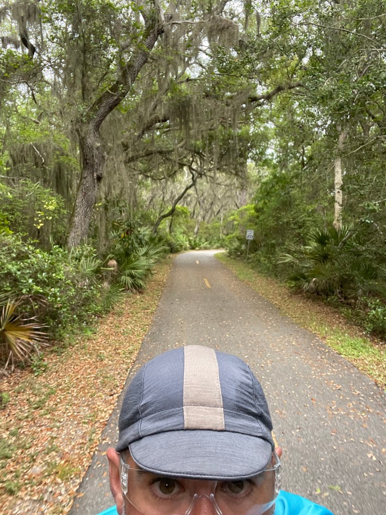 Anyhoo. That nine miles is gonna have to wait. In true firefighter spirit, I’ve several plans, most of which I expect will fail. Standard issue. Nonetheless planning happens. Just like shit. Pre-planning I’m fact. This park is a good choice, considering I had no idea when the death rockets would get me to the coast. “What time you got?” There’s actually camping here, in case of a late arrival from Orlando. Also, probably toilets, though I’m not using them right now. Also, Little Talbot Island state park campground is 7 miles up, right on the ocean — and with Florida’s no-turn away walk up/bike up camping policy — also a very attractive option.