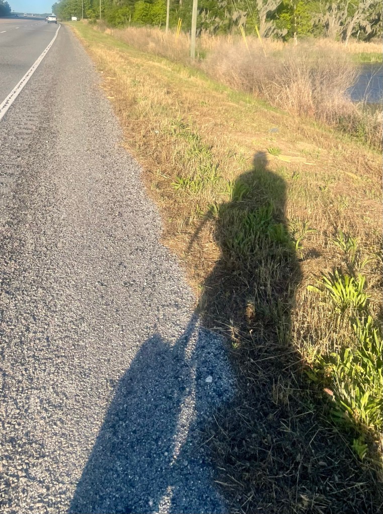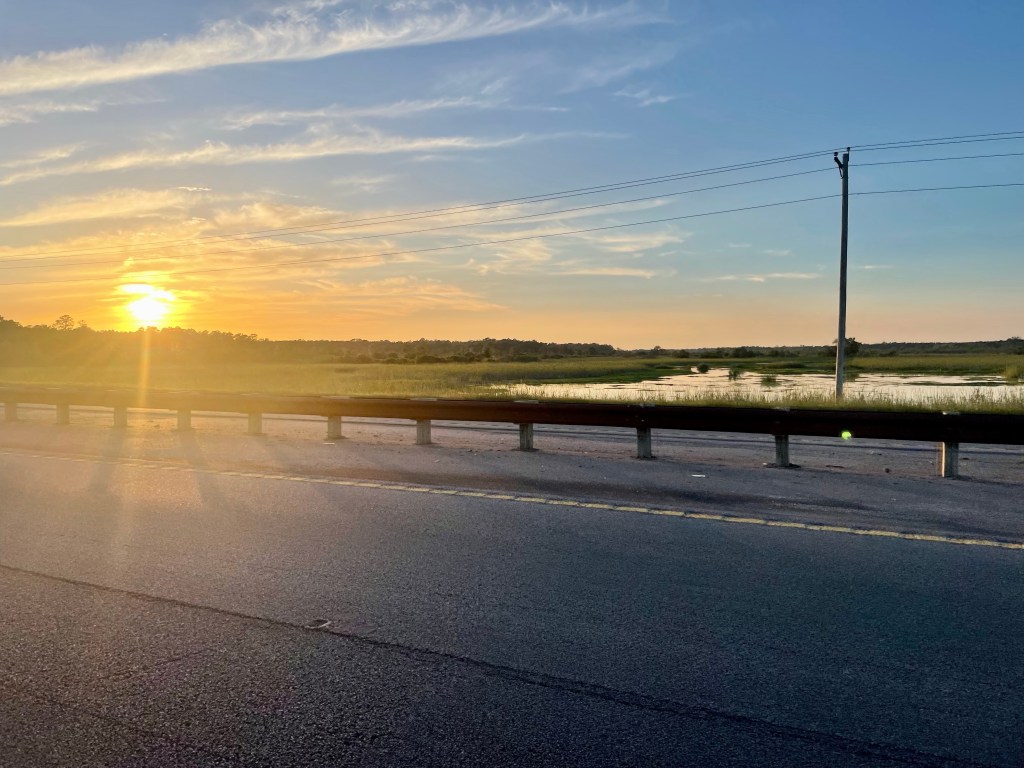 After the remainder of the Spanish Moss Rail Trail, I see very little if nothing but marsh mania, super swampy, muck and mud. Maybe one store early in the 40 miles to Jacksonboro. The wind has shifted again for me. Now out of the south, so even a slight tailwind is working with me. Tom Petty and the Heartbreakers’ “Breakdown” comes on. Of course it does. I put it on this playlist. Right on time. The irony is that’s it’s getting late and I’m chasing my shadow — my body is exhausted yet holding up fine on mile 65, I just really can’t afford a mechanical issue. It’ll put me into darkness on this highway. And just for the record, Tom Petty is allowed to you use the word “honey” in this song because it’s art. And he’s dead now. There’s context. Fuckers.