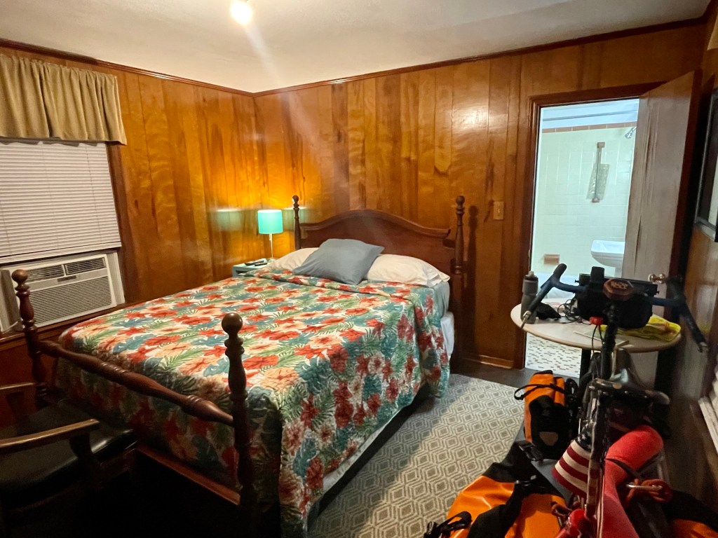 Im chasing my shadow. The advantage of long days. It’s fun. Until it’s not. Especially outside of cities, it gets dark quickly. And very dark. A second store pops up with 8 miles left. Im out of water. Im on fumes. Im going on. It’s twilight and there’s no time to stop. The sun sets on me and i finish the last few miles in darkness. The motel is actually dope. Cozy little room trapped in the 50s. The wifi password is backintheday. I pay Dolores. I crush some instant pho noodles. I crash. That’s all.
