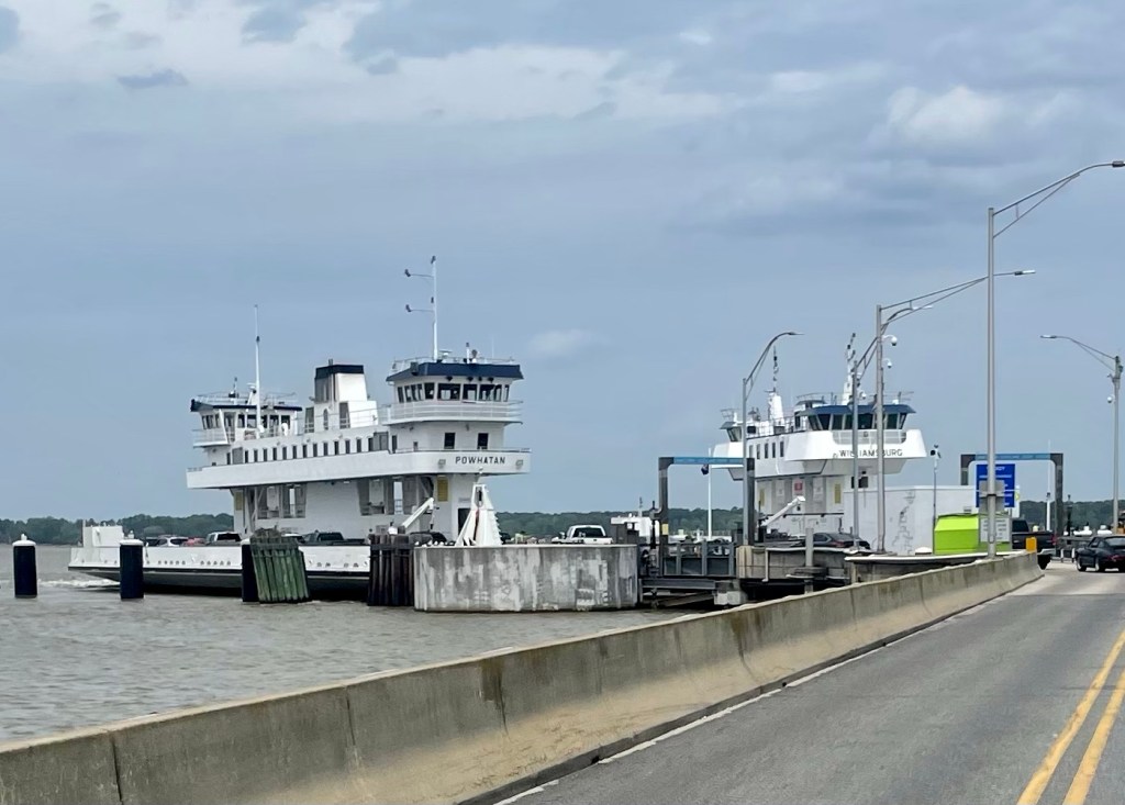 Ferry Four. Into Jamestown. Named after a native. The boat. Not the settlement. I barely make it on time, rolling downhill up past stopped cars who’ll have to wait another 45 minutes for the boat. I make the cutoff, literally getting on board behind the last car. Whew. That’s timing for ya. There’s four other day cyclists on here We chat briefly. Everyone wants to know where i started and where I’m going. It’s a short ride over the James River. Good bike trail coming up. And Jamestown historic stuff. Rain looking ominous as they put on raincoats. I’m good for now.