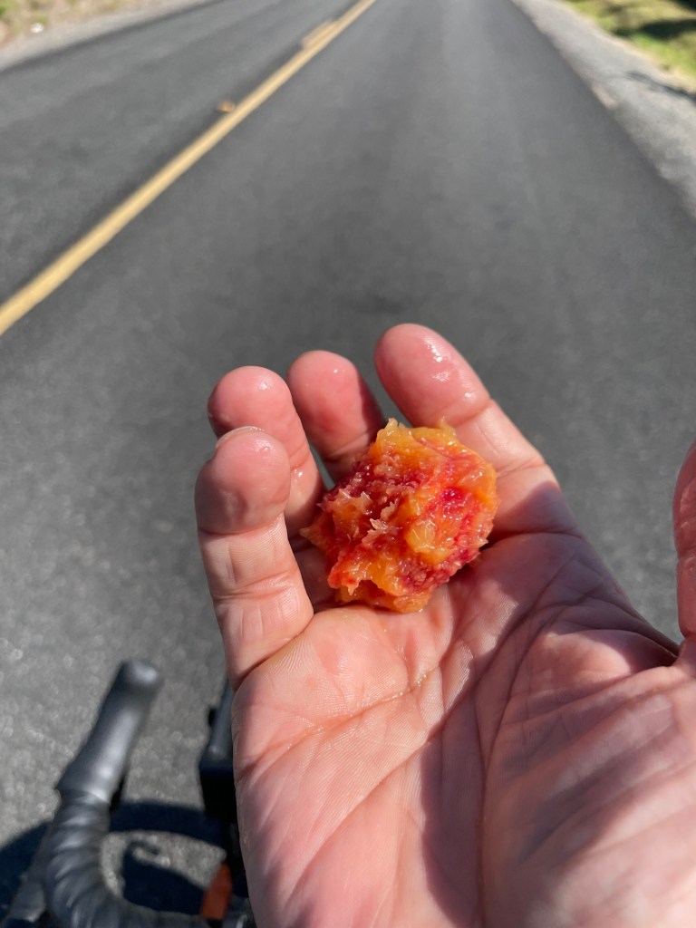 I succeed with only marginal stank-grime-fecal-foot; I walk up the hill and turn the corner, still walking my bike — I lean against my bike to pop my left sock and then left shoe back on. Right sock and —- pop pop pop. They shootin! Oh snap. The crackle of gunfire. I pop on my right shoe and pedal the fuck on. Hoping Chad didn’t just get shot gunned for our trespassing. I look back a few moments later and he’s behind me again and we tear through this tall grass mixed with manure, then some gravel, then a gate, then back on the road. Gunfire still going off in the distance. Always in some shit. Just various degrees.