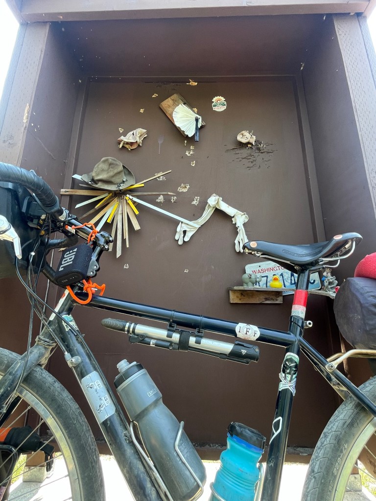 The next morning, I haven’t been eaten by bears, coffee gets jet boiled, a very fine US National Forest Service outhouse gets utilized (extra rolls of toilet paper and a lid-down sign?!) and away we go.