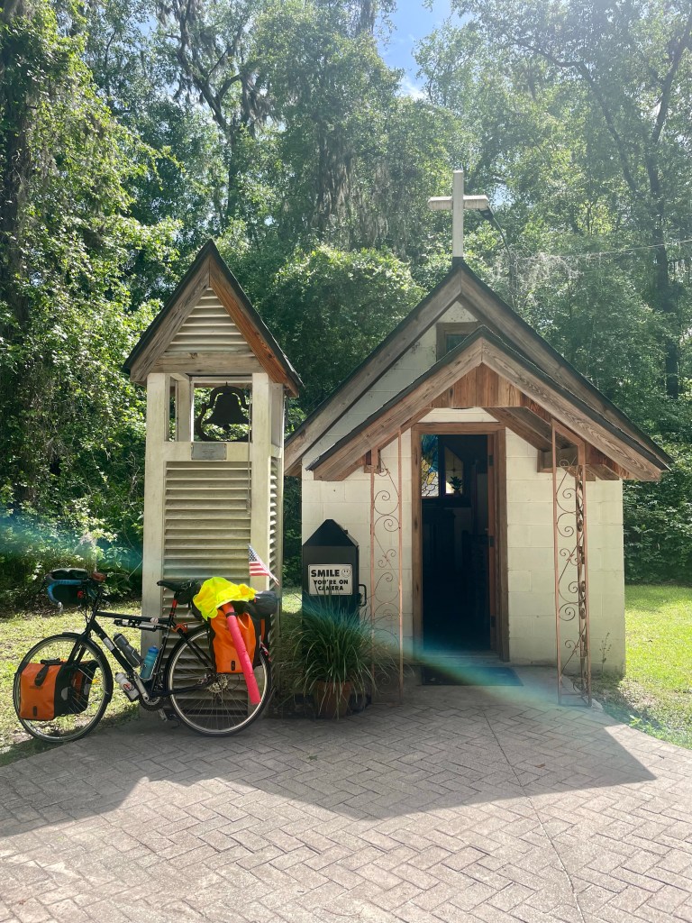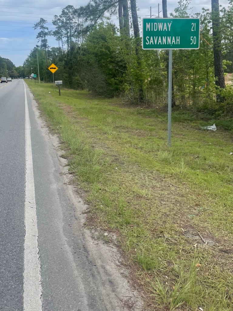 Taking a break in Midway Georgia, which is misleading because it’s today’s halfway to Savannah and also half way between the Florida and Carolina lines — but not the halfway point of my entire intended ride. I score some artisan jerky. Righteous Felon. I like it. The name and the taste. Though shit was $7.49 and from a gas station on US road 17 — smells legitimately like highway robbery if I’ve ever stepped in it. I blow the toilet up as mildly stinky form of payback.