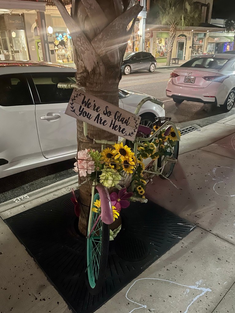A touristy little historic downtown is jumping with folks who are not at work on a Friday afternoon. I am one of them. Hell yes. The strawberry blond here is fabulous. Not too strawberry at all. The beer too. Crisp light and refreshing. I handle some short bike ride biz (code word for slow roll buffalo) and check the route maps. I’m back on the ACA map and happy about it. Back with the fossil fuelers though. About 30 miles of sprawl left. The state park 10 miles up is full with no campgrounds open. I could stop there and plead my case. Plenty of daylight left today. I decide to push out into the unknown, or more specifically the entire Walt Disney World thingamabob.
