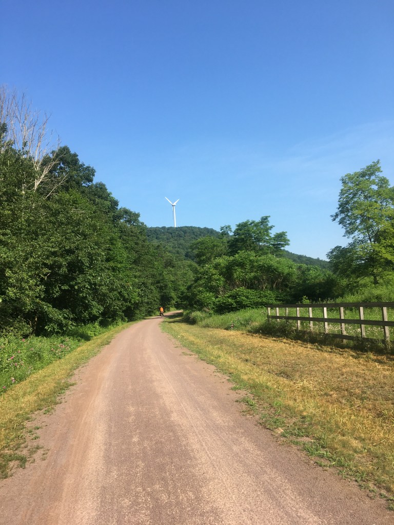 It’s getting hot again and the trail has leveled out a bit so it’s no longer a easy cruise along. We’re straddling the Youghiogheny River, which is apparently only one of four rivers in the world that flows south to north. I haven’t fact checked that, but it definitely is flowing in the direction we’re riding, which is generally northbound. Little towns come and go, we don’t stop because there’s not much there.
