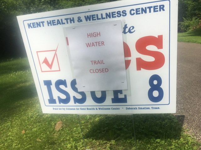 A couple miles north and I reconnect with the Towpath trail south of Akron, high ground compared to the towns below. It winds and turns and drops me right into downtown Akron, which is incredibly quiet. I jump on one last trail for the day and head toward Kent, my third and final detour awaiting me. Yet another flooded out trail, so I have to backtrack a bit and negotiate all of the rush hour traffic – fun! No need for the moving goalposts technique today, I’m so busy just rerouting some way and some how, that I don’t need much motivation behind that.